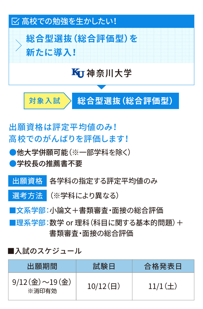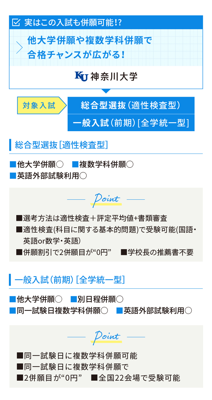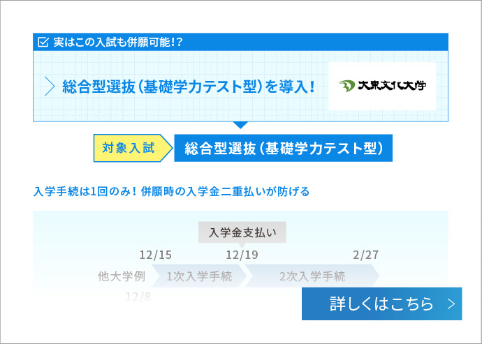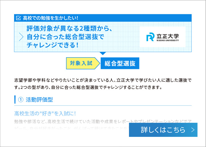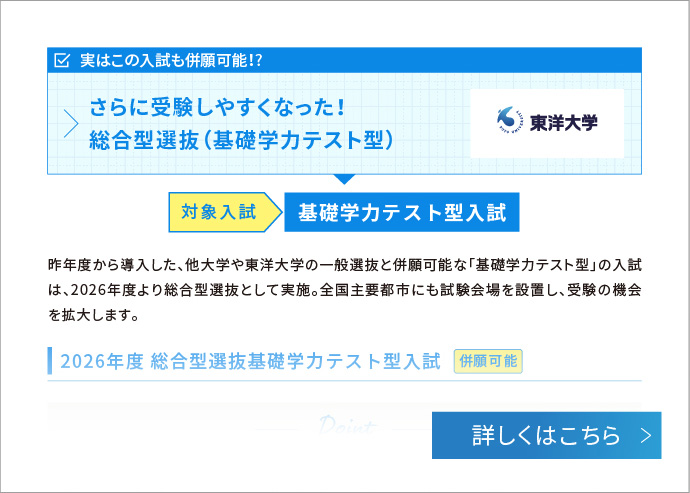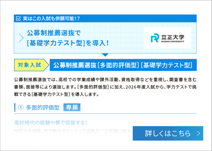 近年、大学入試の制度はますます多様化しています。このコーナーではさまざまな大学の入試方式をわかりやすく紹介。自分に合った大学と入試方式を見つけるヒントが、きっとここにあります。「こんな受け方もあったんだ!」という発見もあるかもしれません。
