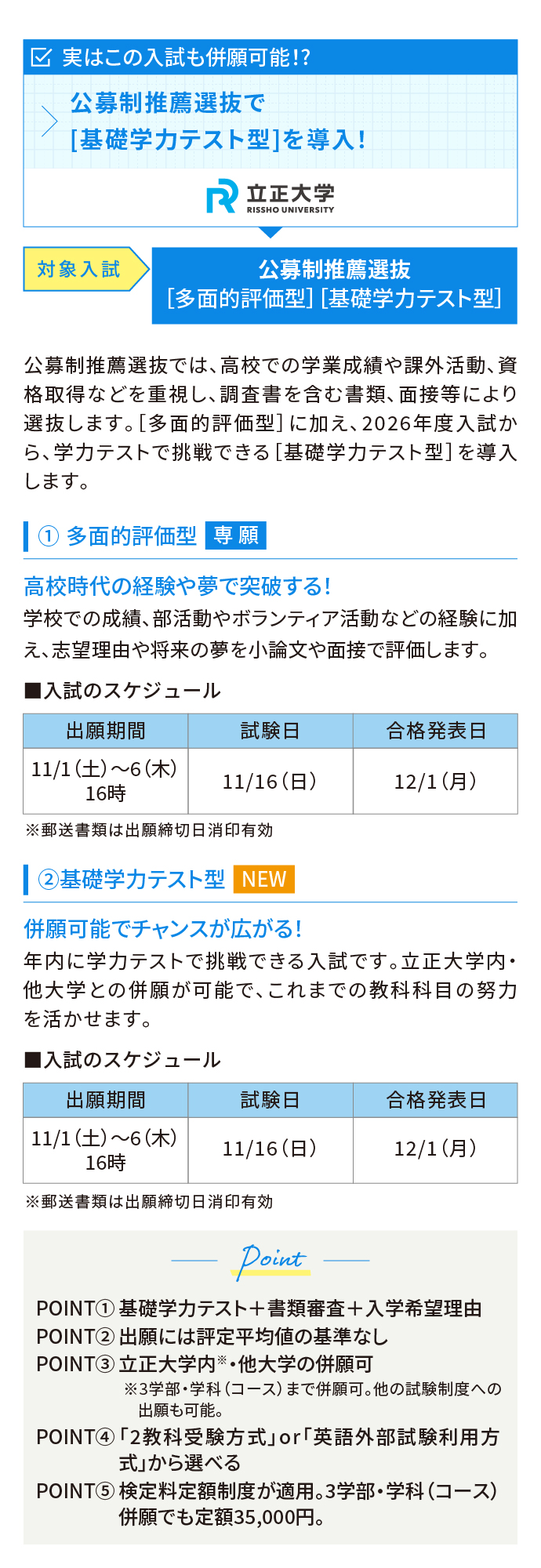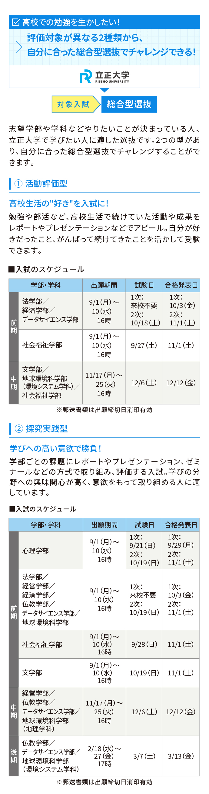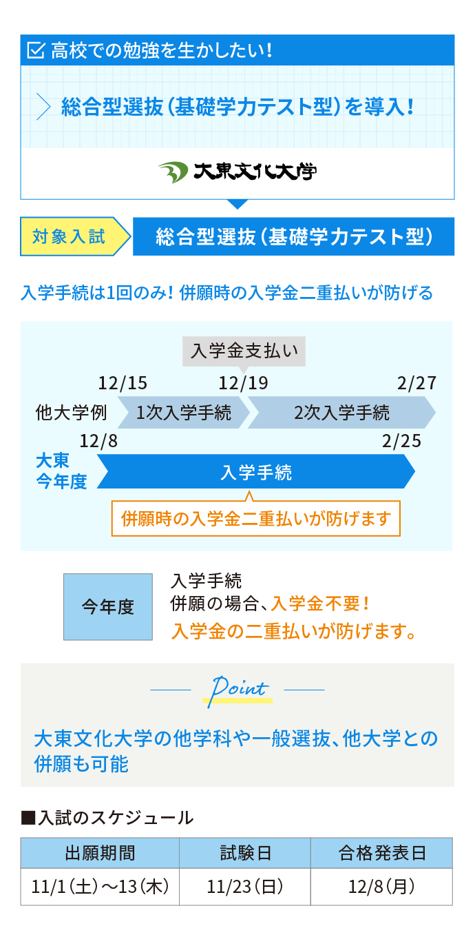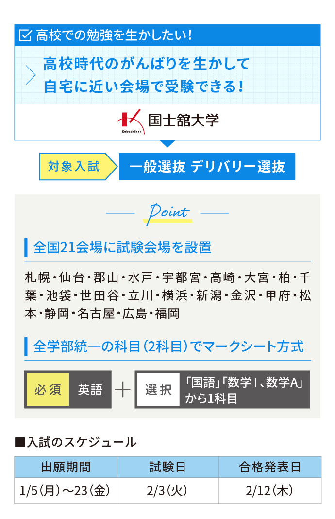 ぜひこのページを活用して、自分に合った大学と入試方式を見つけてください。