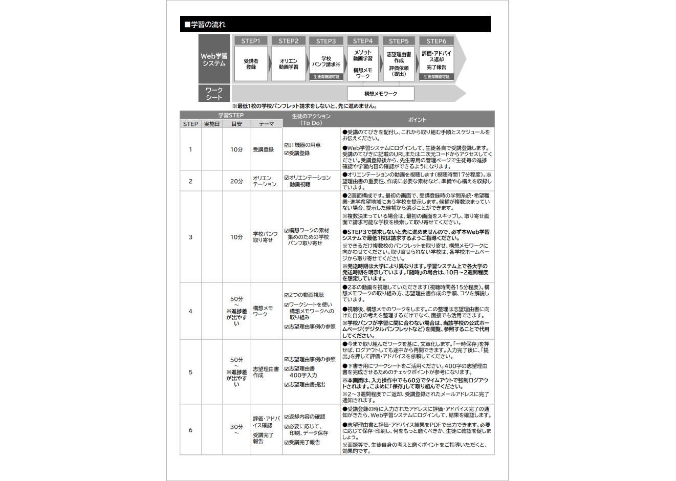 【生徒向け】受講のてびき(補助教材のアクセス方法も記載)、ワークシート