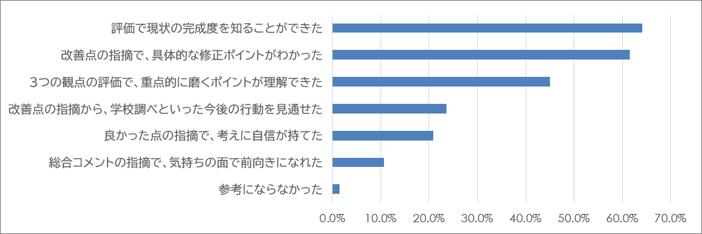 - 返却された評価・アドバイスを見た生徒が「もっと具体的にしないといけないんだ」と気づきを得た